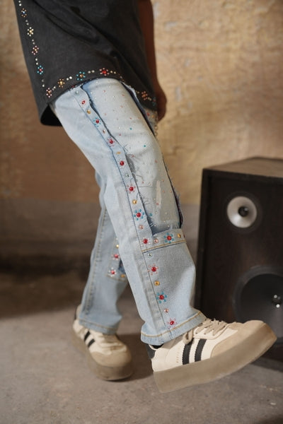 Cream Buttons + Zip Washed Rhinestones Infant Boys Jeans