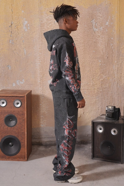 Praise Black Rhinestone Premium Mens Hoodie + Pearls Zip Up