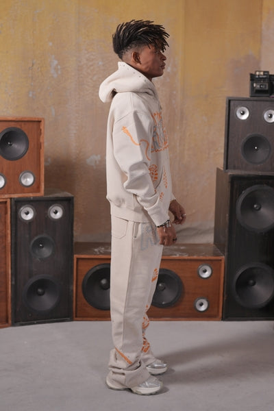 Praise Off-White Rhinestone Premium Mens Hoodie + Pearls Zip Up