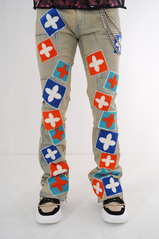 4Clover Sand Premium Mens Stacked Jeans + Wallet Chain