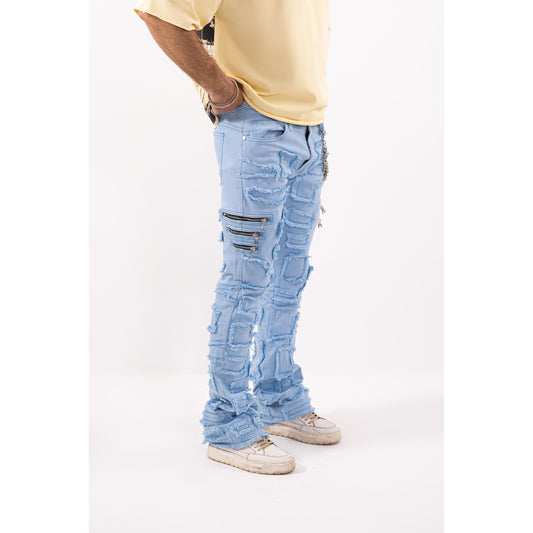 Full Stone Ocean Blue Premium Mens Stacked Jeans + Wallet Chain
