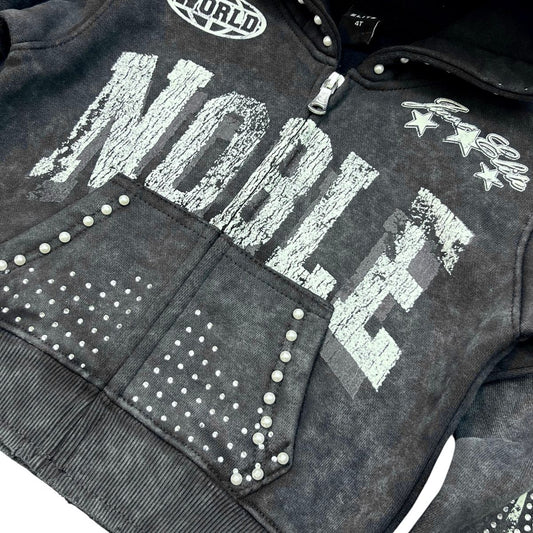 Noble White on Black Rhinestones Washed Premium Kids HoodieRegular price From $85.00Regular priceUnit price / per-