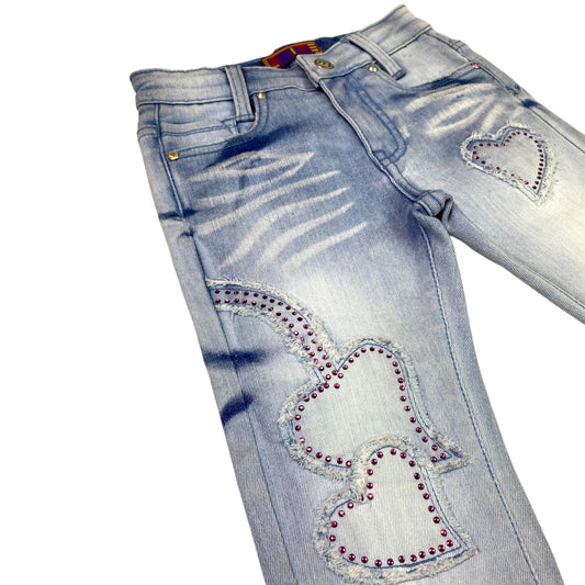 Taupe/Black Rhinestone Premium Kids Stacked Jeans
