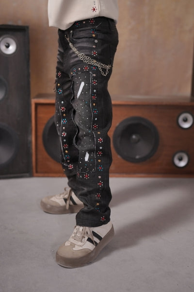 Mardi Gras Embellished Black Kids Jeans