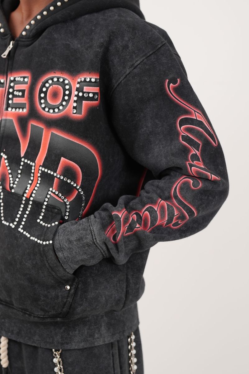 State Black/Red Rhinestone Premium Mens Fleece...